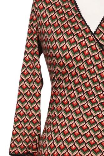 | Details | Jersey, Dreiviertelarm, Wickeloptik, V-Ausschnitt, Rauten |