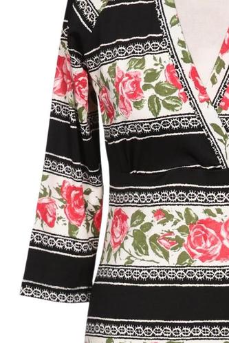 | Details | Jersey, Dreiviertelarm, V-Ausschnitt, Floral, Streifen |