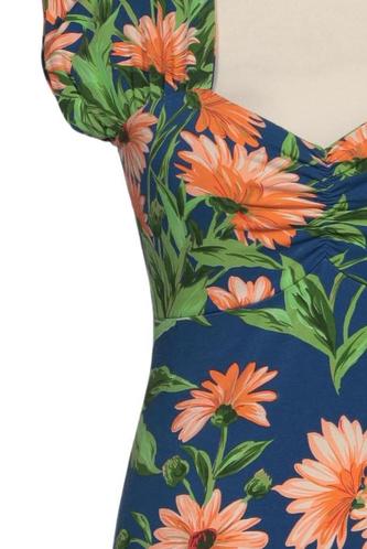 | Details | Jersey, Kurzarm, V-Ausschnitt, Reißverschluss/Knöpfe hinten, Floral |