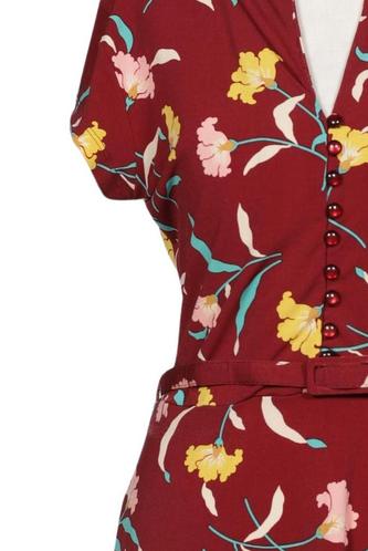 | Details | Kurzarm, Bindegürtel, V-Ausschnitt, Front Knopfleiste, Floral |