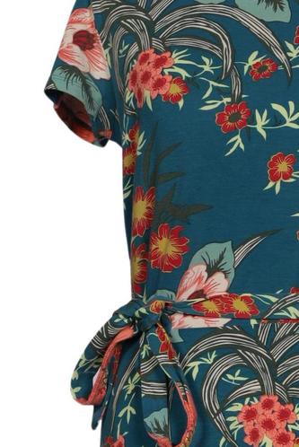| Details | Jersey, Kurzarm, Bindegürtel, V-Ausschnitt, Floral |