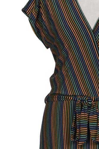 | Details | Jersey, Kurzarm, Bindegürtel, Wickeloptik, V-Ausschnitt, Streifen |