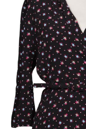 | Details | Jersey, Dreiviertelarm, Bindegürtel, Wickeloptik, V-Ausschnitt, Floral |