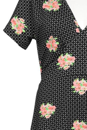 | Details | Jersey, Kurzarm, Bindegürtel, Wickeloptik, V-Ausschnitt, Floral |