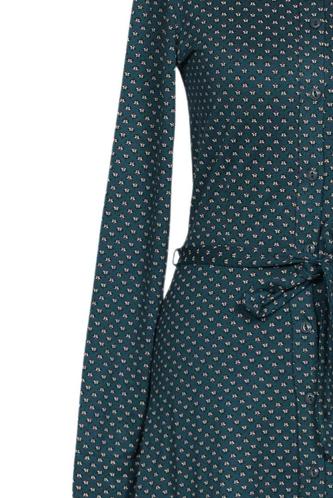 | Details | Jersey, Langarm, Bindegürtel, Rundhals, Front Knopfleiste, Motivprint |