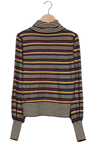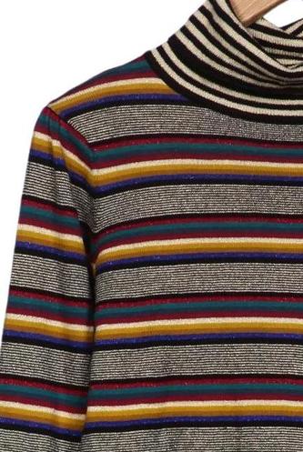 | Details | Grobstrick, Langarm, Rollkragen, Streifen |