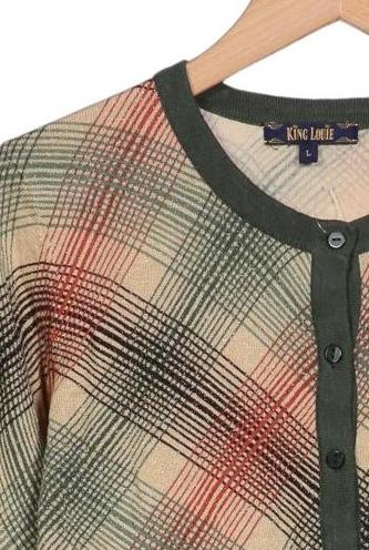 | Details | Grobstrick, Langarm, Rundhals, Front Knopfleiste, Kariert |