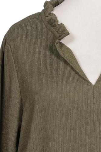 | Details | Jersey, Rüschen, Dreiviertelarm, V-Ausschnitt, verschlusslos, Einfarbig |