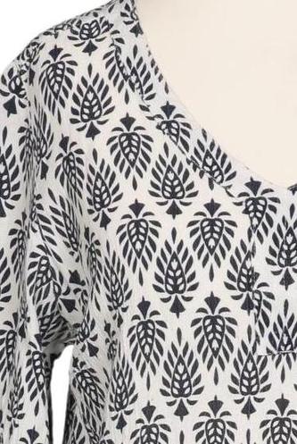 | Details | Jersey, Langarm, V-Ausschnitt, verschlusslos, Motivprint |