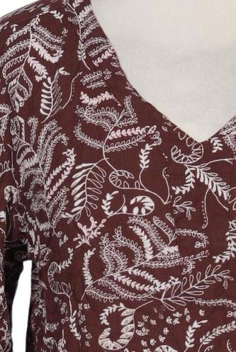 | Details | Jersey, Langarm, V-Ausschnitt, verschlusslos, Motivprint |