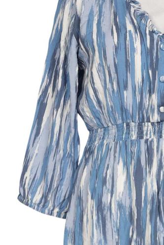 | Details | Jersey, Dreiviertelarm, Bindegürtel, V-Ausschnitt, Gummizug/Tunnelzug, Motivprint |