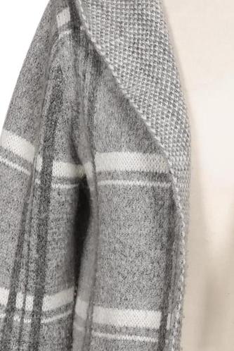 | Details | Grobstrick, Langarm, verschlusslos, Kapuze, Kariert |