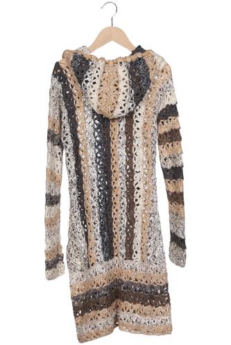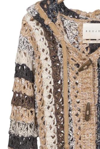 | Details | Gehäkelt, Grobstrick, Langarm, Kapuze, Front Knopfleiste, Streifen |