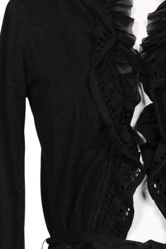 | Details | Rüschen, Grobstrick, Langarm, Bindegürtel, verschlusslos, Einfarbig |