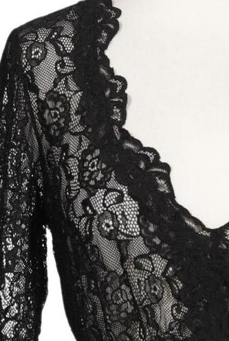| Details | Spitze, Kurzarm, V-Ausschnitt, verschlusslos |