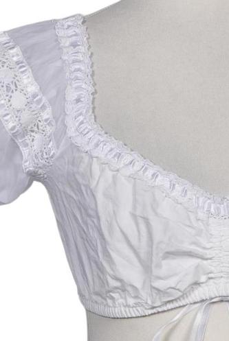 | Details | Schnürung, Spitze, Rüschen, Lochstickerei, Kurzarm, V-Ausschnitt, verschlusslos |