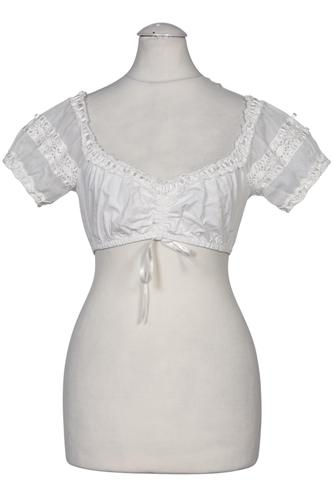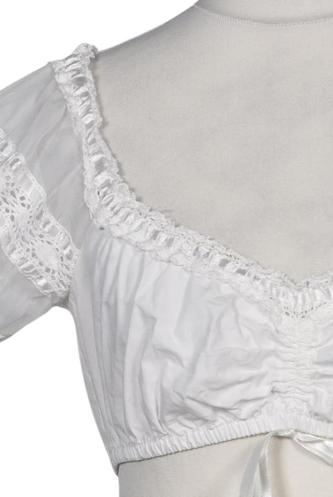 | Details | Schnürung, Spitze, Rüschen, Lochstickerei, Kurzarm, V-Ausschnitt, verschlusslos |