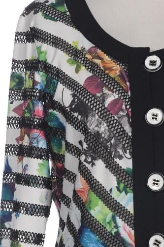 | Details | Langarm, Rundhals, Front Knopfleiste, Floral, Streifen |