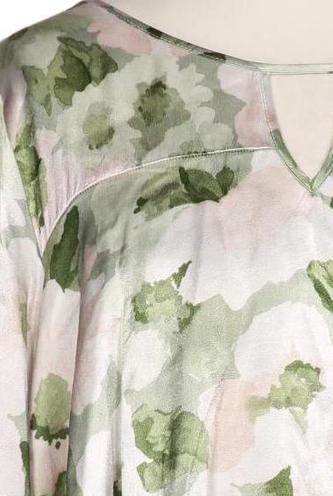| Details | Satin, Rüschen, Kurzarm, V-Ausschnitt, verschlusslos, Floral |