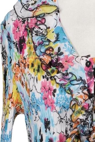 | Details | Jersey, Rüschen, Dreiviertelarm, Front Knopfleiste, Motivprint |