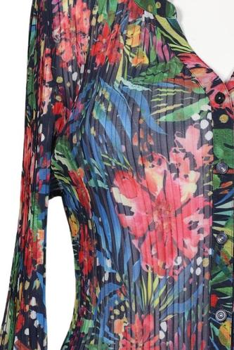 | Details | Rüschen, Chiffon, Dreiviertelarm, V-Ausschnitt, verschlusslos, Floral |