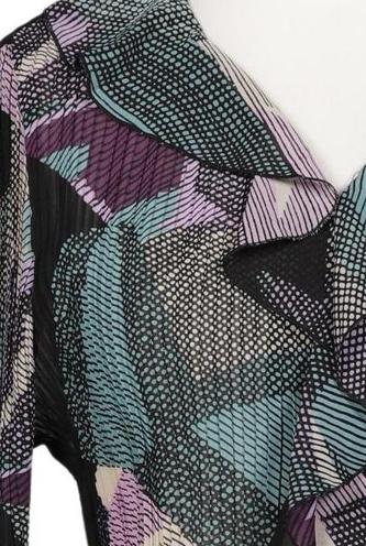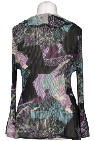 | Details | Rüschen, Langarm, V-Ausschnitt, verschlusslos, Motivprint |