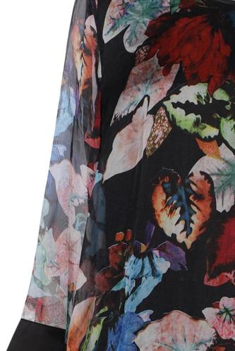 | Details | Satin, Dreiviertelarm, Rundhals, verschlusslos, Floral |