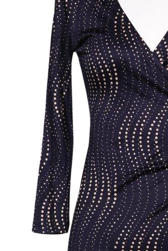 | Details | Jersey, Dreiviertelarm, Bindegürtel, Wickeloptik, V-Ausschnitt, Motivprint |