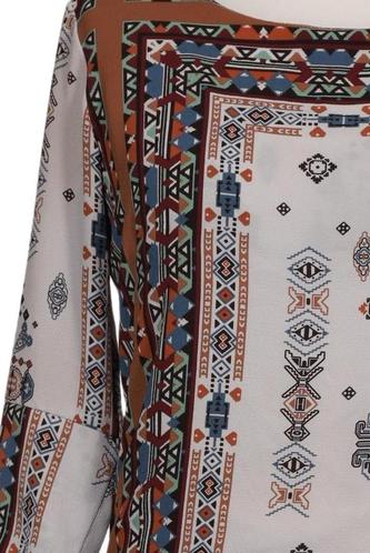 | Details | Satin, Dreiviertelarm, Rundhals, Reißverschluss/Knöpfe hinten, Ethno |