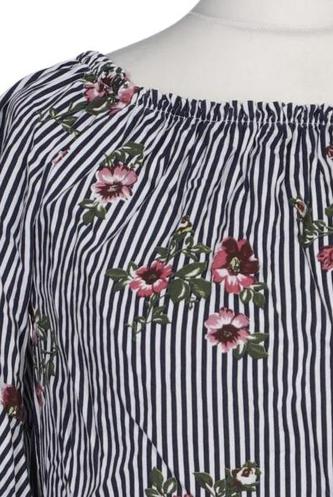 | Details | Jersey, Dreiviertelarm, Rundhals, verschlusslos, Floral, Streifen |