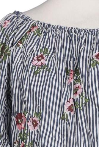 | Details | Jersey, Dreiviertelarm, V-Ausschnitt, verschlusslos, Floral, Streifen |