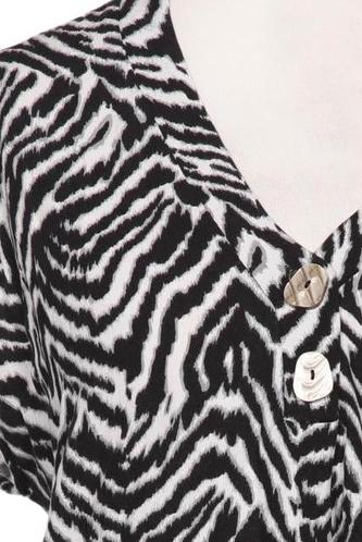 | Details | Jersey, Kurzarm, V-Ausschnitt, verschlusslos, Zebra |