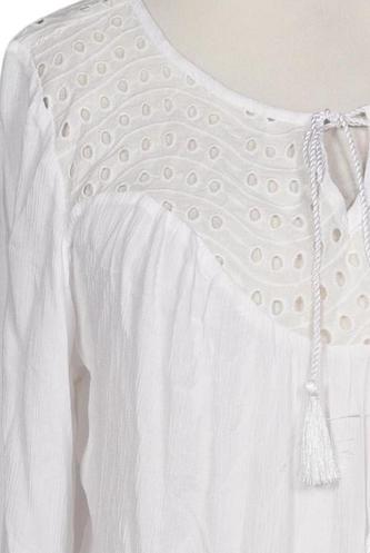 | Details | Fransen, Jersey, Spitze, Lochstickerei, Langarm, V-Ausschnitt, verschlusslos, Einfarbig |