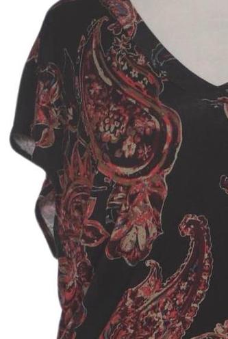 | Details | Jersey, Kurzarm, V-Ausschnitt, Paisley |