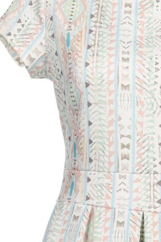 | Details | Plissee, Kurzarm, Rundhals, Reißverschluss/Knöpfe hinten, Motivprint |