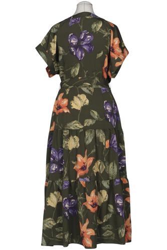 | Details | Rüschen, Kurzarm, Bindegürtel, Wickeloptik, V-Ausschnitt, Floral |