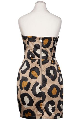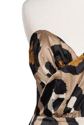 | Details | Satin, ärmellos, V-Ausschnitt, Reißverschluss/Knöpfe hinten, Leopard |