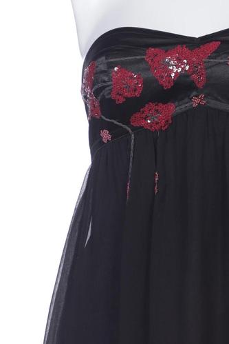 | Details | Satin, Stickerei, Chiffon, ärmellos, V-Ausschnitt, Reißverschluss/Knöpfe hinten, Floral |