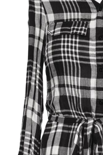 | Details | Langarm, Bindegürtel, Rundhals, Front Knopfleiste, Kariert |