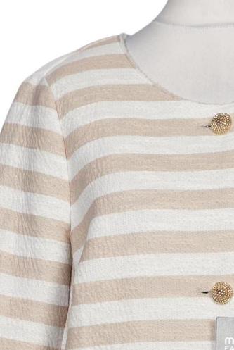 | Details | Grobstrick, Dreiviertelarm, Rundhals, Front Knopfleiste, Streifen |