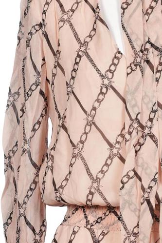 | Details | Chiffon, Langarm, Bindegürtel, V-Ausschnitt, Motivprint |