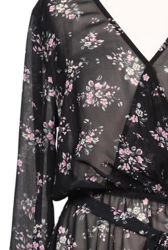 | Details | Chiffon, Langarm, Bindegürtel, Wickeloptik, V-Ausschnitt, Floral |