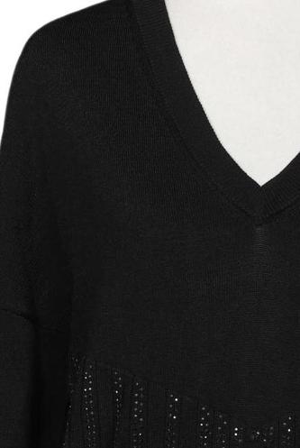 | Details | Grobstrick, Langarm, V-Ausschnitt, Einfarbig |