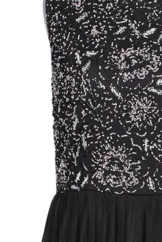 | Details | Cutouts, Tüll, ärmellos, Rundhals, Reißverschluss/Knöpfe hinten, Floral |