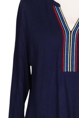 | Details | Jersey, Stickerei, Dreiviertelarm, V-Ausschnitt, Einfarbig |