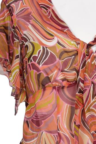 | Details | Rüschen, Chiffon, Kurzarm, V-Ausschnitt, verschlusslos, Floral |