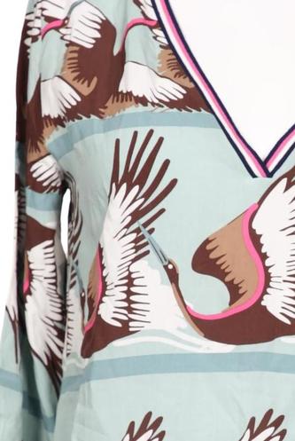 | Details | Satin, Dreiviertelarm, V-Ausschnitt, verschlusslos, Motivprint |