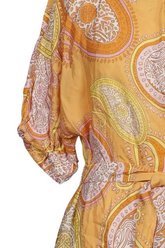 | Details | Satin, Kurzarm, Bindegürtel, Rundhals, Paisley |