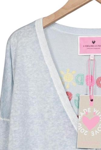 | Details | Grobstrick, Langarm, Front Knopfleiste, Motivprint |