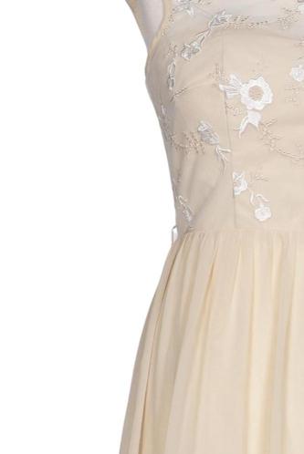 | Details | Stickerei, Chiffon, ärmellos, V-Ausschnitt, Reißverschluss/Knöpfe hinten, Floral |
